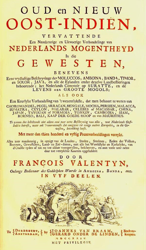 François Valentijn, Oud En Nieuw Oost-Indiën, Vervattende Een Naaukeurige En Uitvoerige Verhandelingen Van Nederlands Mogentheyd in Die Gewesten, etc. Vde Deel [Old and New East Indies, containing an accurate and compendious treatment of Dutch power in these regions, etc. pt 5] (Dordrecht and Amsterdam: Joannes van Braam and Gerard onder de Linden, 1726), 316. ↩