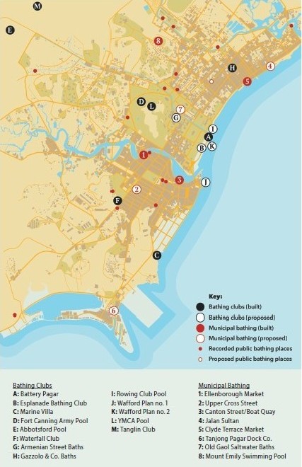 In this initial history of public bathing in colonial Singapore, I have combined ideas of bathing for leisure, health and cleanliness to consider the methods and varieties of places through which people entered the water in public environments. In extending Singapore’s history of bathing a century before the 1931 origins of municipally owned public swimming at Mount Emily Pool, a key task was to begin identifying the places of bathing.