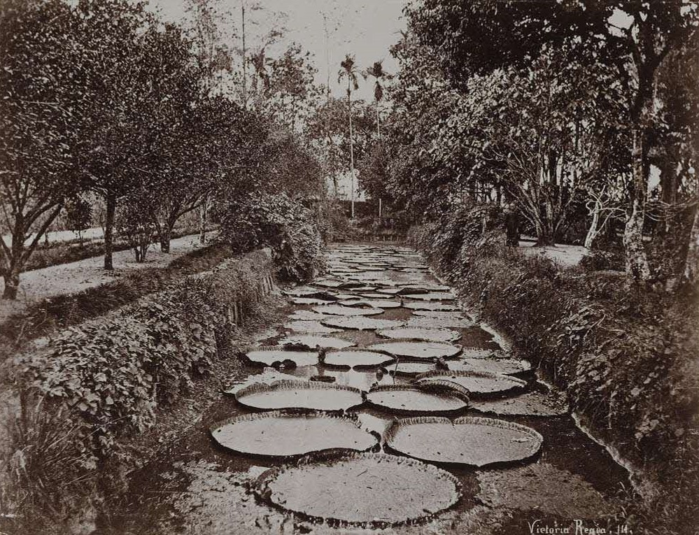 Frederickson also extolled the beauty of Whampoa’s world-famous Vitória-Régia water lilies (Victoria amazonica; the second largest in the water lily family) floating on what he called a “diminutive lake”. Each flower measured a foot (30.5 cm) across, while the circular leaves ranged from 4 to 6 ft (122–183 cm) in diameter with a raised rim of 2–3 in (5–7.5 cm).10 Whampoa’s pet poodle loved running about on the leaves, a sight that never failed to amuse visitors.