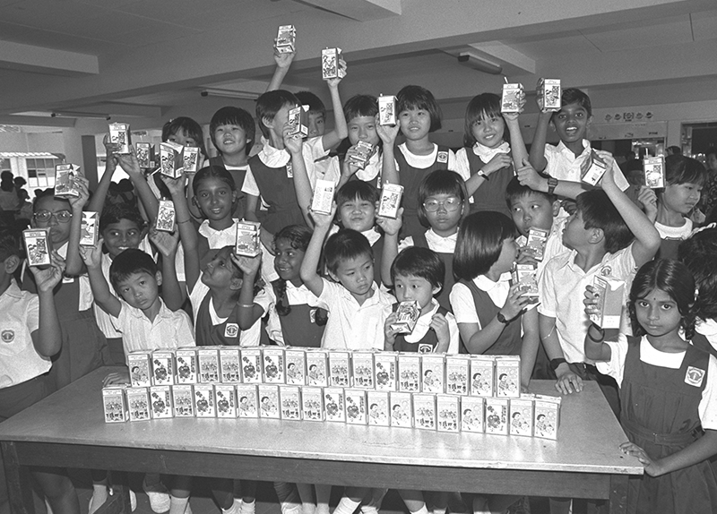 In November 1984, the council even came up with an event, appropriately named Milk Day. The inaugural event was held at the Mandai Zoological Gardens and attended by thousands of primary and pre-primary students. “The idea is to get children to participate in the activities and to make milk-drinking fun for them,” said Nalla Tan, the council chairman. Each child received two packets of a new apricot-flavoured milk, which they drank with other food like sandwiches and cakes. The children were also entertained by an animal show, ventriloquist performances and a colouring competition.23